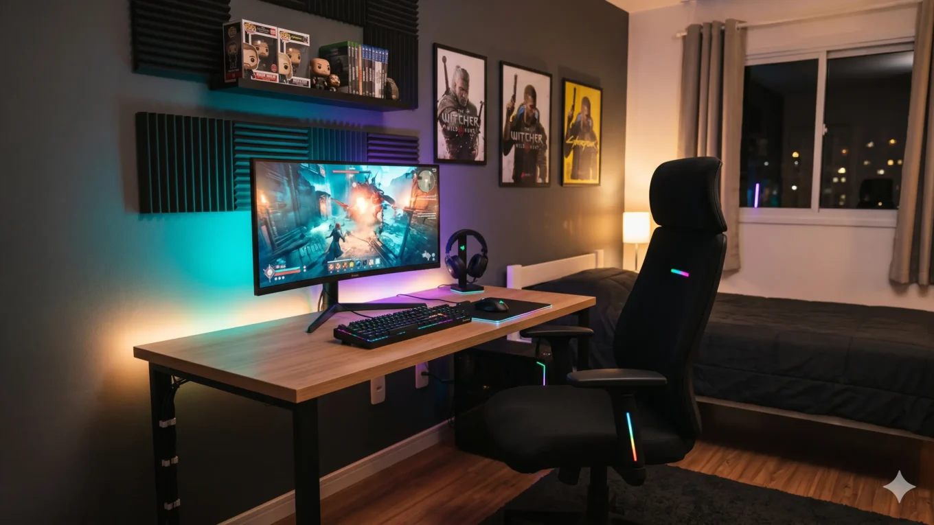 Neste guia, vou te pegar pela mão e mostrar como priorizar cada centavo para transformar seu quarto comum em um verdadeiro “templo gamer”.
